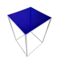 Open witte zuil met blauw plexi blad